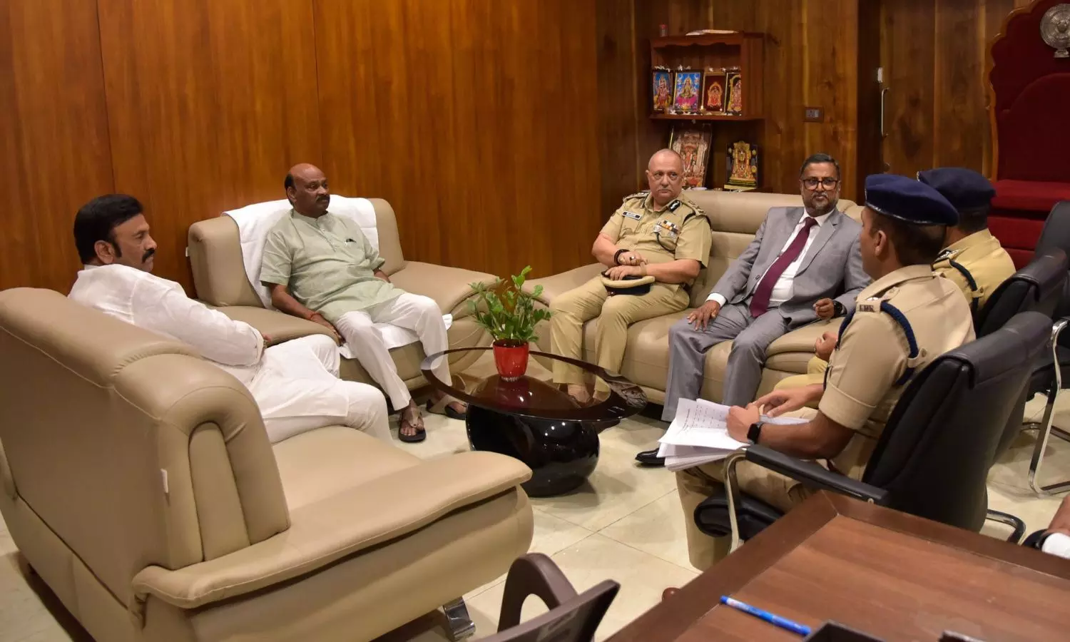 బుధవారం నుండి మొదలయ్యే ఆంధ్రప్రదేశ్ అసెంబ్లీ బడ్జెట్ సమావేశాలు సజావుగా సాగేందుకు కట్టుదిట్టమైన బధ్రతా ఏర్పాట్లు చేయాలని శాసన సభాపతి చింతకాయల అయ్యన్న పాత్రుడు పోలీస్ శాఖ అధికారులను ఆదేశించారు. అసెంబ్లీ బడ్జెట్ సమావేశాలు ప్రారంభం కానున్న నేపధ్యంలో మంగళవారం అసెంబ్లీలో పోలీస్ అధికారులతో శాంతి, భద్రతల ఏర్పాట్లపై పోలీస్ ఉన్నతాధికారులతో సమావేశం నిర్వహించారు. ఈసందర్భంగా ఆయన మాట్లాడుతూ ప్రశాంత వాతావరణంలో బడ్జెట్ సమావేశాలు కొనసాగేలా పటిష్టమైన బందోబస్తు ఏర్పాట్లను చేయాలని డి.జి.పి.హరీష్ కుమార్ గుప్తను ఆదేశించారు. సభ్యులు బస చేసే ప్రాంతాలు మొదలు సమావేశాలకు వారు హాజరు అయ్యేంత వరకూ పటిష్టమైన పోలీస్ బందోబస్తు ఏర్పాటు చేయాలని,వారి రాకపోకలకు ఎటువంటి ట్రాఫిక్ అంతరాయం లేకుండా తగు జాగ్రత్తలు తీసుకోవాలన్నారు. అంతేగాక అసెంబ్లీకి వచ్చే అన్ని మార్గాల్లో ట్రాఫిక్ కు అంతరాయం లేకుండా తగిన చర్యలు తీసుకోవాలని చెప్పారు.గత అనుభవాలను దృష్టిలో ఉంచుకొని ఎక్కడా ఇబ్బందులు తలెత్తకుండా తగిన చర్యలు తీసుకోవాలని చెప్పారు.సచివాలయం చుట్టూ ఖాళీ ప్రాంతం ఎక్కువగా ఉన్న నేపథ్యంలో నాలుగు వైపులా పటిష్టమైన పోలీస్ బందో బస్తుతో పాటు అధునాతన సమాచార,సాంకేతిక వ్యవస్థతో పటిష్టమైన నిఘా ఏర్పాట్లు చేయాలన్నారు.ఎటువంటి ఏమరపాటు లేకుండా ఎంతో అప్రమత్తంగా పోలీస్ అధికారులు,సిబ్బంది బందో బస్తు విధులను నిర్వహించాలని స్పీకర్ అయ్యన్నపాత్రుడు పోలీస్ అధికారులకు సూచించారు. ఈసమావేశంలో ఉప సభాపతి కె.రఘురామ కృష్ణ రాజు,డిజిపి హరీశ్ కుమార్ గుప్త, అసెంబ్లీ సెక్రటరీ జనరల్ సూర్యదేవర ప్రసన్నకుమార్ ఇతర పోలీస్ ఉన్నతాధికారులు పాల్గొన్నారు.