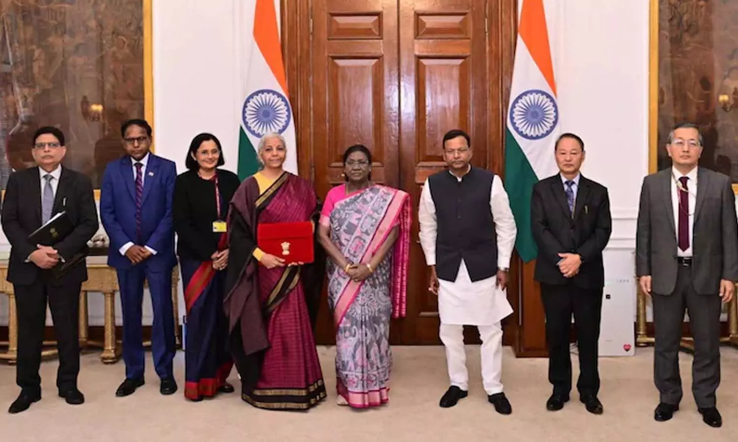 Budget -2026: కాంజీవరం చీరలో నిర్మల.. 'దహీ - చీని' తినిపించిన రాష్ట్రపతి