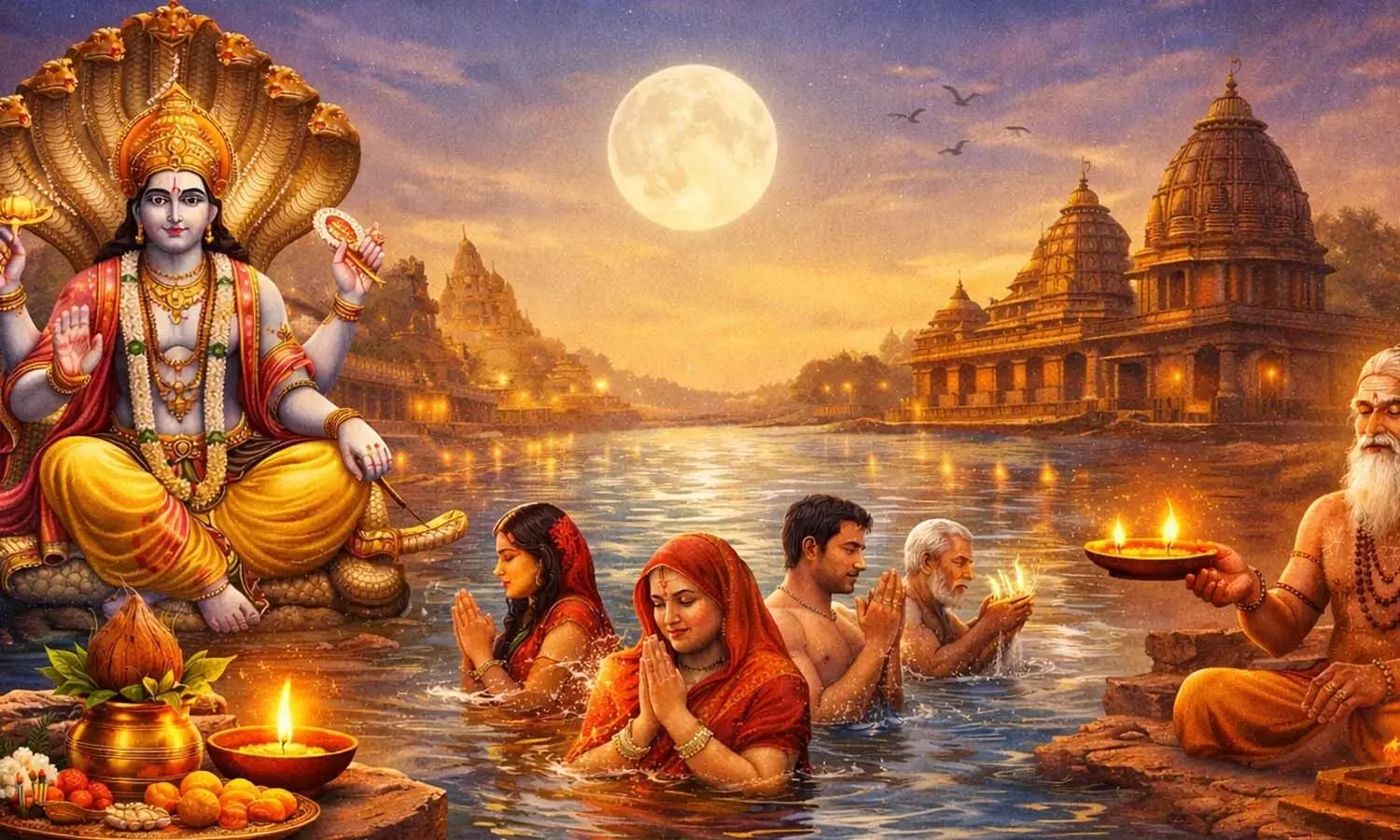 మాఘమాసం పవిత్ర స్నానాలకు ప్రసిద్ధి. ఇక మాఘ పౌర్ణమి మరింత ప్రత్యేకం. ఈ రోజు దేవతలే భువిపైకి వచ్చి నదుల్లో స్నామాచరిస్తారని పురాణ గాథ. ఇంతటి పుణ్య దినాన భక్తులు నదీ స్నానం చేయాలని పండితులు సూచిస్తున్నారు. నువ్వులు, వస్త్రాలు, బియ్యం దానం చేస్తే జాతక పితృ దోషాలు తొలగి పాప విముక్తి, ఐశ్వర్య ప్రాప్తి కలుగుతుందని చెబుతున్నారు.