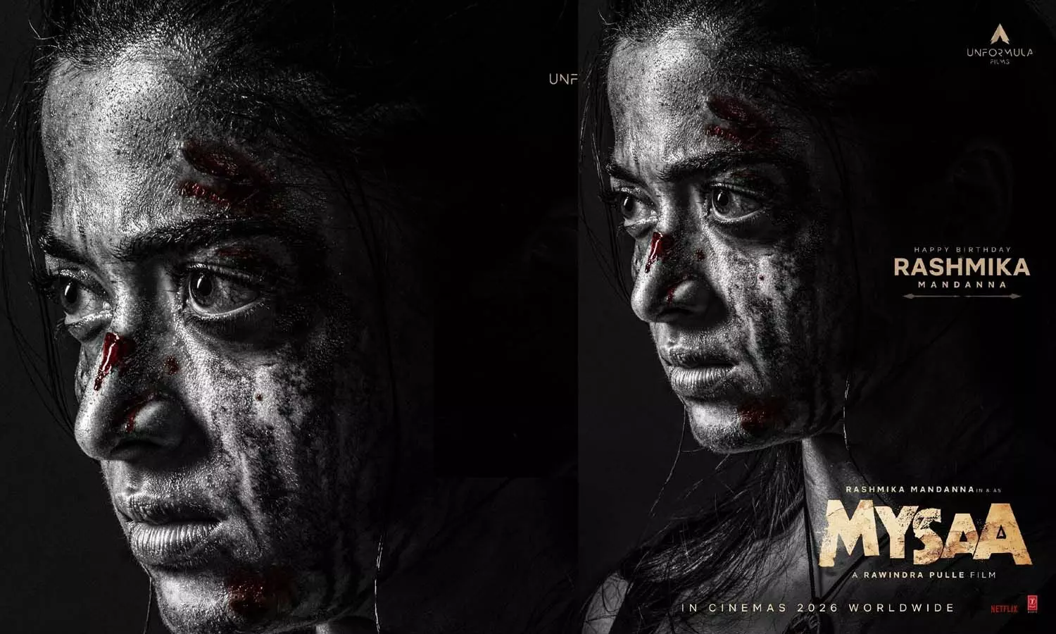 నేషనల్ క్రష్ రష్మిక మందన్న పుట్టినరోజును పురస్కరించుకుని, ఆమె నటిస్తున్న తాజా చిత్రం 'మైసా' (Mysaa) టీమ్ ఒక పవర్ఫుల్ పోస్టర్ను విడుదల చేసింది. ఈ పోస్టర్ రష్మికను మునుపెన్నడూ చూడని విధంగా చాలా రా, ఇంటెన్స్ లుక్లో ఆవిష్కరించింది. ముఖంపై రక్తపు చారలు, గాయాలతో ఉన్నప్పటికీ, ఆమె కళ్ళలో కనిపిస్తున్న పట్టుదల మరియు కసి ప్రేక్షకులను విశేషంగా ఆకట్టుకుంటున్నాయి. సినిమా ఎంత గంభీరంగా ఉండబోతోందో ఈ ఒక్క పోస్టర్ ప్రతిబింబిస్తోంది.