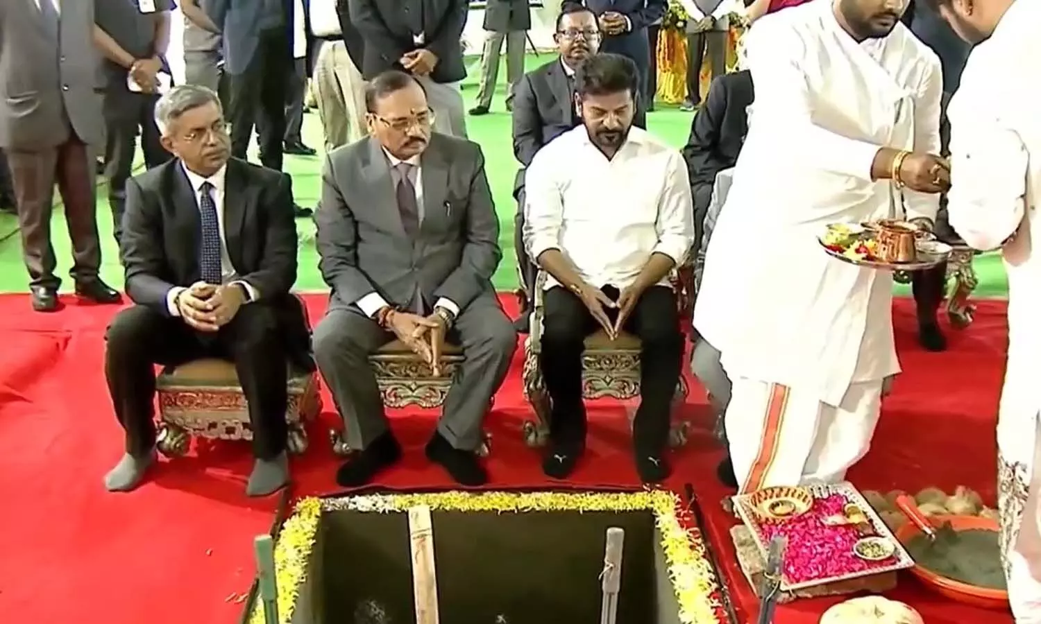 రంగారెడ్డి జిల్లా రాజేంద్రనగర్లోని బుద్వేల్లో హైకోర్టు జోన్-II భవన నిర్మాణాలకు సుప్రీంకోర్టు ప్రధాన న్యాయమూర్తి జస్టిస్ సూర్యకాంత్ ఆదివారం శంకుస్థాపన చేశారు. ఈ కార్యక్రమంలో తెలంగాణ హైకోర్టు ప్రధాన న్యాయమూర్తి జస్టిస్ అపరేష్ కుమార్ సింగ్, ముఖ్యమంత్రి ఎ. రేవంత్ రెడ్డితో పాటు పలువురు సుప్రీంకోర్టు, హైకోర్టు న్యాయమూర్తులు మరియు ఉన్నతాధికారులు పాల్గొన్నారు.