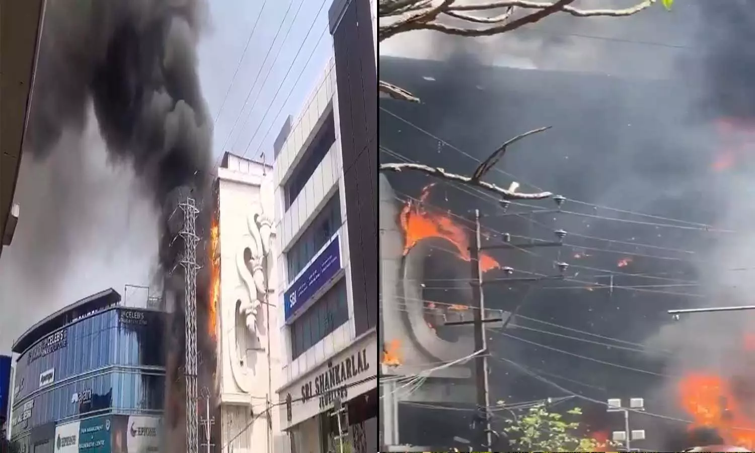 హైదరాబాద్లోని జూబ్లీహిల్స్లో గురువారం మధ్యాహ్నం భారీ అగ్నిప్రమాదం సంభవించింది. జూబ్లీహిల్స్ చెక్ పోస్ట్ మెట్రో స్టేషన్ సమీపంలోని 'మంగళ గౌరి' వస్త్ర దుకాణంలో అకస్మాత్తుగా మంటలు చెలరేగాయి. షాపులో పెద్ద ఎత్తున నిల్వ ఉన్న పట్టు వస్త్రాలు, ఇతర దుస్తులు ఉండటంతో మంటలు క్షణాల్లోనే భవనం అంతటా వ్యాపించాయి. ప్రమాద సమయంలో లోపల ఉన్న సిబ్బంది, కస్టమర్లు భయంతో బయటకు పరుగులు తీయడంతో పెను ప్రమాదం తప్పింది. దట్టమైన పొగ మెట్రో స్టేషన్ పరిసరాలను కమ్మేయడంతో ప్రయాణికులు తీవ్ర ఆందోళనకు గురయ్యారు.