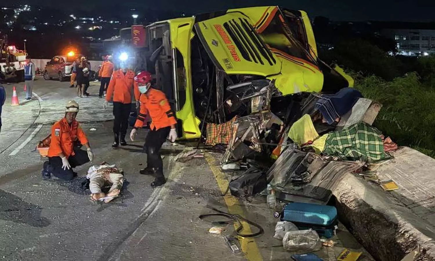 ఇండోనేషియాలోని ప్రధాన ద్వీపమైన జావాలో ఘోర బస్సు ప్రమాదం జరిగింది. ఈ ఘటనలో 16 మంది చనిపోయారు. సోమవారం అర్ధరాత్రి దాటిన తర్వాత జరిగిన ప్రయాణీకుల బస్సు ప్రమాదంలో 16 మంది మరణించారని అధికారులు తెలిపారు. 34 మందితో ప్రయాణిస్తున్న బస్సు టోల్ రోడ్డుపై నియంత్రణ కోల్పోయి, పక్కకు పడిపోయే ముందు కాంక్రీట్ వాల్ని ఢీకొట్టిందని, ఇండోనేషియాకు చెందిన సెర్చ్ అండ్ రెస్క్యూ ఏజెన్సీ చీఫ్ బుడియోనో అన్నారు. ఇంటర్-ప్రావిన్స్ బస్సు రాజధాని జకార్తా నుండి దేశంలోని పురాతన రాజ నగరం యోగ్యకర్తకు ప్రయాణిస్తుండగా, సెంట్రల్ జావాలోని సెమరాంగ్ నగరంలోని క్రాప్యాక్ టోల్ వే వద్ద వంపుతిరిగిన ఎగ్జిట్ రాంప్లోకి ప్రవేశిస్తుండగా బోల్తా పడిందని ఆయన చెప్పారు.