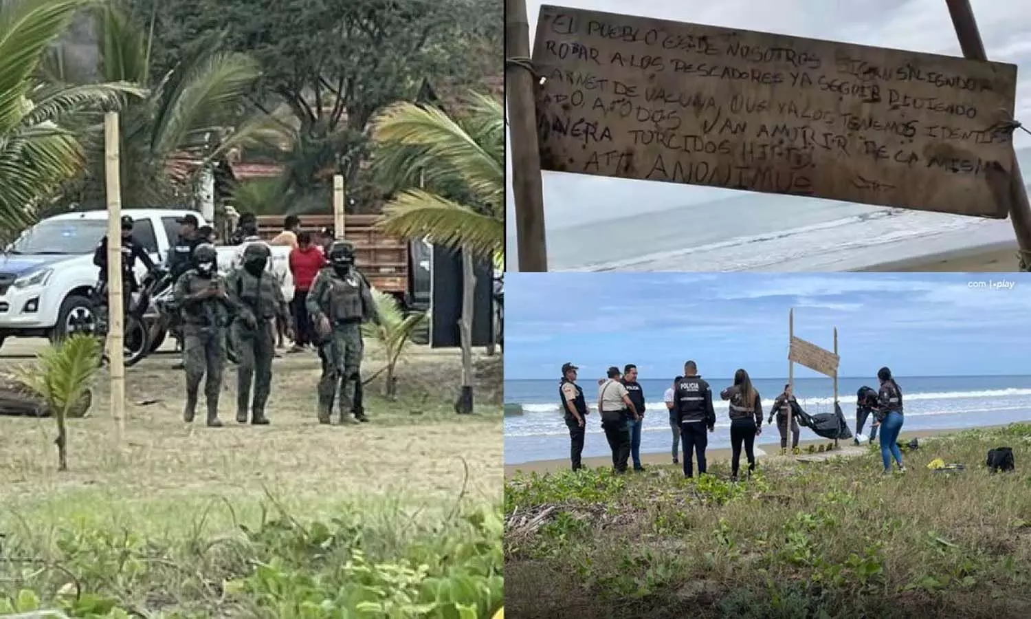 మాదకద్రవ్యాల అక్రమ రవాణాకు సంబంధించిన హింసాకాండతో ఈక్వెడార్ దేశం అతలాకుతలమవుతున్న వేళ.. నైరుతి ఈక్వెడార్లోని ఓ బీచ్లో ఐదు మానవ తలలు తాళ్లకు వేలాడుతూ కనిపించాయని పోలీసులు ఆదివారం (జనవరి 11, 2026) తెలిపారు. మనాబి ప్రావిన్స్లోని ప్యూర్టో లోపెజ్ అనే చిన్న ఫిషింగ్ పోర్టులోని పర్యాటక బీచ్లో తలలు దొరికాయని పోలీసులు తెలిపారు. ఈక్వెడార్ మీడియా, సోషల్ మీడియాలో షేర్ చేసిన చిత్రాలలో ఇసుకలో నిలబెట్టిన చెక్క స్తంభాలకు తాళ్లతో కట్టబడిన తెగిపోయిన తలలు కనిపించాయి, సంఘటన స్థలంలో రక్తం కనిపించింది. తలల పక్కన వదిలివేయబడిన ఒక చెక్క బోర్డు స్థానిక మత్స్యకారులను లక్ష్యంగా చేసుకుని దోపిడీదారులను లక్ష్యంగా చేసుకుని బెదిరింపు సందేశాన్ని కలిగి ఉంది.