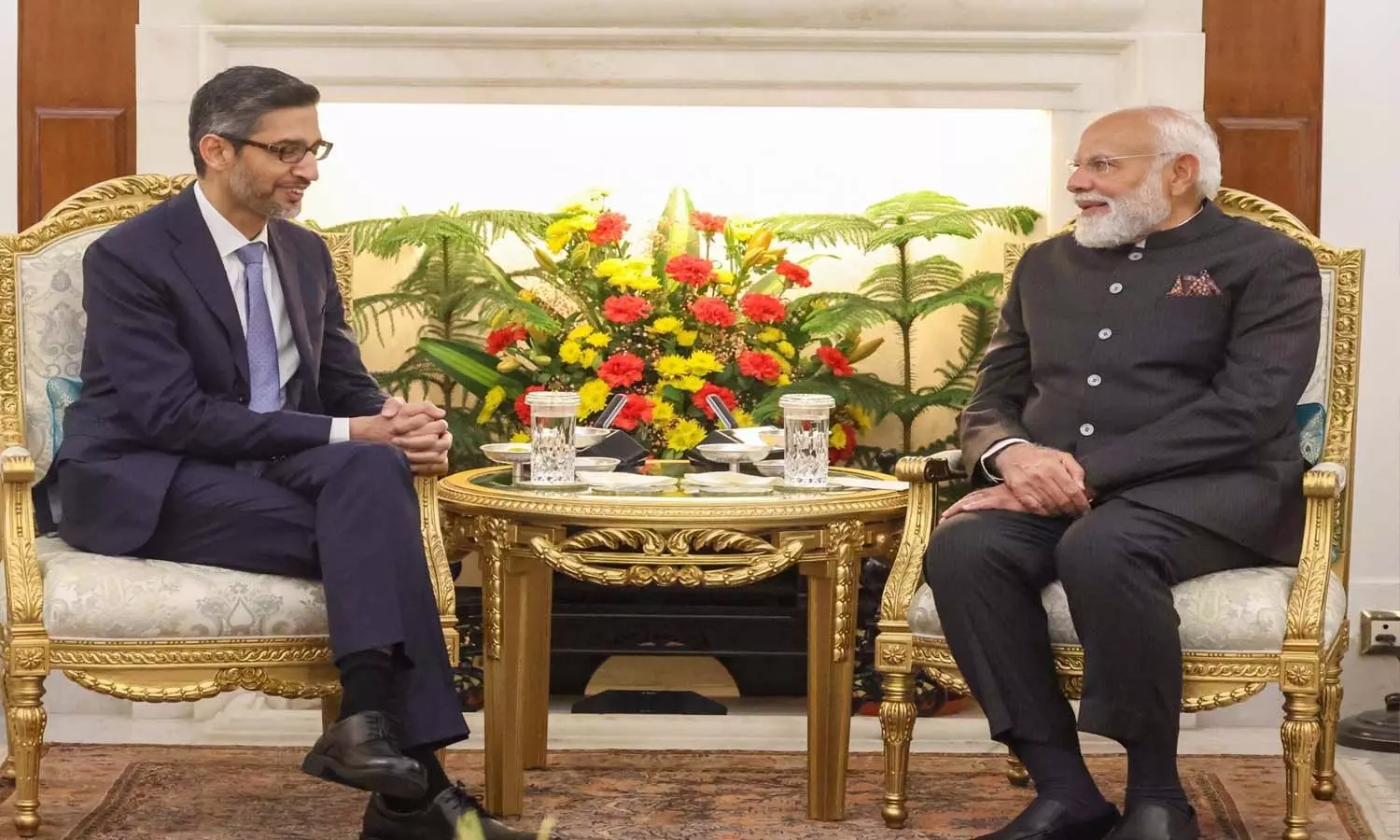 న్యూఢిల్లీ: గూగుల్ సీఈఓ సుందర్ పిచాయ్ బుధవారం దేశ రాజధానిలో ప్రధానమంత్రి నరేంద్ర మోదీతో సమావేశమయ్యారు. ఢిల్లీలో జరుగుతున్న 'గ్లోబల్ AI ఇంపాక్ట్ సమ్మిట్ 2026'లో పాల్గొనేందుకు భారత్ వచ్చిన పిచాయ్, వచ్చిన వెంటనే ప్రధానిని కలిసి పలు కీలక అంశాలపై చర్చించారు. ఫిబ్రవరి 20న జరిగే ఈ సమ్మిట్లో ఆయన కీలకోపన్యాసం చేయనున్నారు.