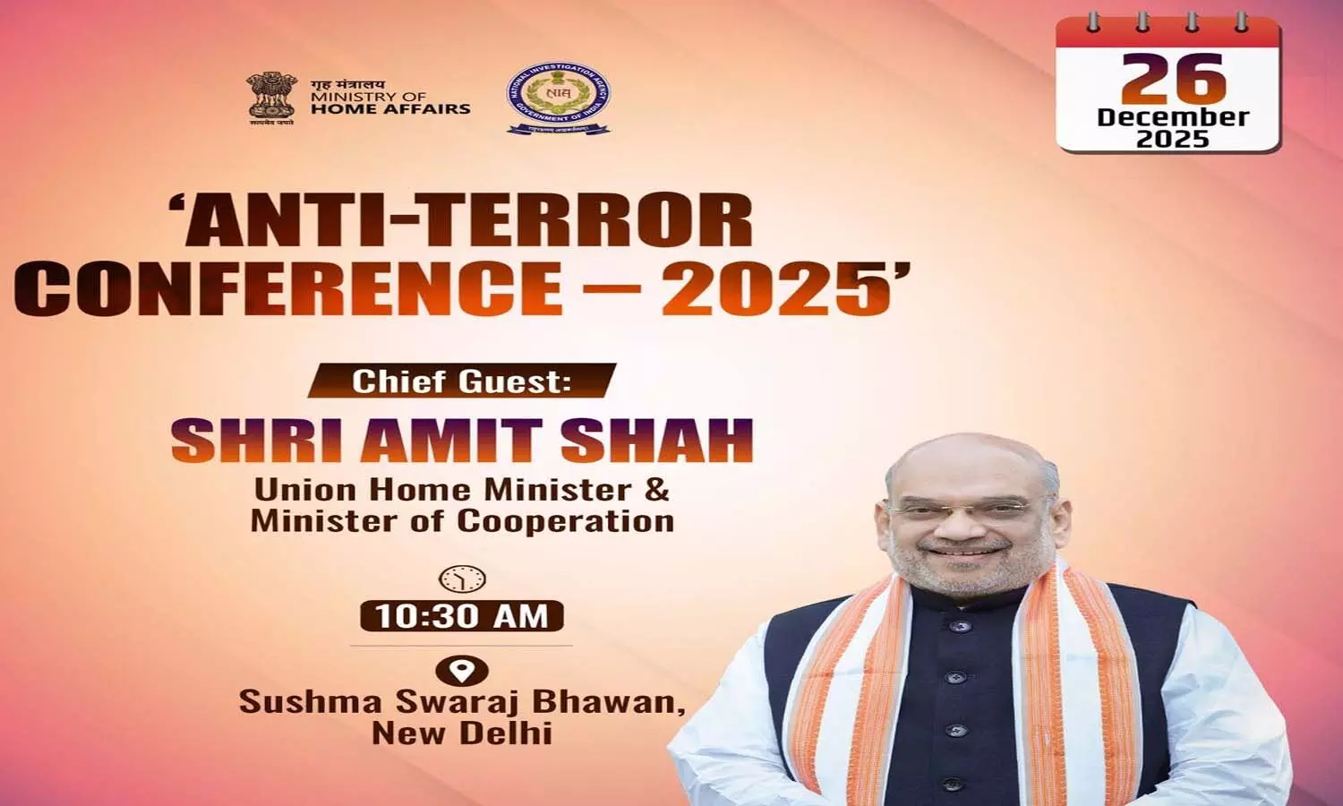 ప్రధానమంత్రి నరేంద్ర మోదీ ఉగ్రవాదంపై జీరో టాలరెన్స్ దృక్పథానికి అనుగుణంగా నిర్వహిస్తున్న ‘ఉగ్రవాద వ్యతిరేక సదస్సు (Anti-Terror Conference)’ను కేంద్ర హోంశాఖ మంత్రి అమిత్ నేడు ఢిల్లీలో ప్రారంభించనున్నారు. ఈ రెండురోజుల సదస్సును జాతీయ దర్యాప్తు సంస్థ (NIA), కేంద్ర హోంశాఖ ఆధ్వర్యంలో నిర్వహిస్తోంది. ఈ వార్షిక సదస్సు ఉగ్రవాదం నుంచి ఉద్భవిస్తున్న కొత్త సవాళ్లను ఎదుర్కొనేందుకు భారత్ అనుసరించాల్సిన నూతన తరం వ్యూహాలపై చర్చించేందుకు ఒక ముఖ్యమైన వేదికగా మారింది. ఉగ్రవాద నిరోధక చర్యల్లో పాల్గొనే ఆపరేషన్ బలగాలు, సాంకేతిక, న్యాయ, ఫోరెన్సిక్ నిపుణులు మరియు వివిధ సంస్థలు ఈ సదస్సులో పాల్గొని జాతీయ భద్రతకు సంబంధించిన అంశాలపై విస్తృతంగా చర్చించనున్నారు.