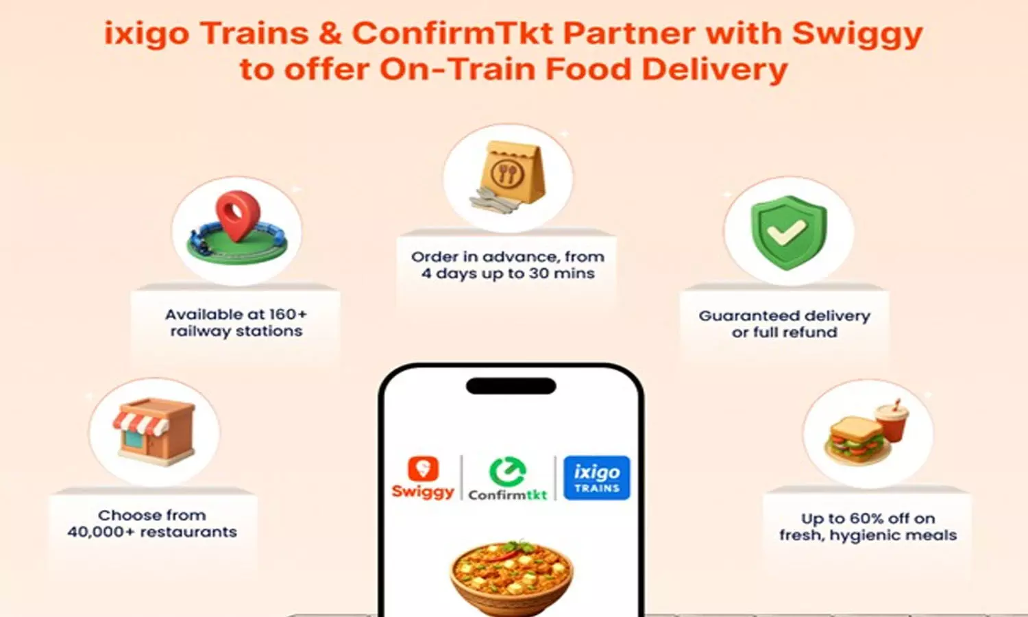 భారతదేశంలో ప్రముఖ AI ఆధారిత ట్రైన్ టిక్కెటింగ్ ప్లాట్ ఫాం, ఇక్సిగో ట్రైన్స్ అండ్ కన్ఫర్మ్ టికెట్, ‘ఫుట్ ఆన్ ట్రైన్’ సేవలను మరింత శక్తివంతం చేయడానికి భారతదేశంలో ఆన్-డిమాండ్ కన్వీనియెన్స్ ప్లాట్ ఫాం స్విగ్గీ (స్విగ్గీ లిమిటెడ్, NSE: SWIGGY / BSE: 544285)తో భాగస్వామ్యం కుదుర్చుకుంది. స్విగ్గీ వారి రెస్టారెంట్ నెట్ వర్క్ ను ఇక్సిగో అండ్ కన్ఫర్మ్ టిక్కెట్ యాప్స్ లో చేర్చడం ద్వారా, తమ ఇల్ల నుండి కస్టమర్లు ఆర్డర్ చేసినప్పుడు ఆశించే అదే ఎంపిక, విశ్వాసం, మరియు విలువలతో "ప్రయాణంలో" ప్రయాణికుల ఆకలి సమస్యకు కావలసిన పరిష్కారాన్ని ఈ సహకారం కేటాయిస్తుంది.