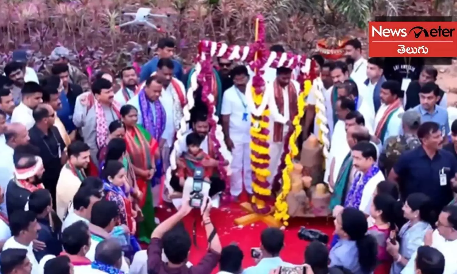 #WATCH | Telangana Chief Minister Revanth Reddy participates in the inauguration of a newly constructed pylon and offers prayers to the tribal deities at the Medaram Sammakka-Saralamma Temple.(Video Source: I&PR Telangana) pic.twitter.com/1sVU6Y0PAb