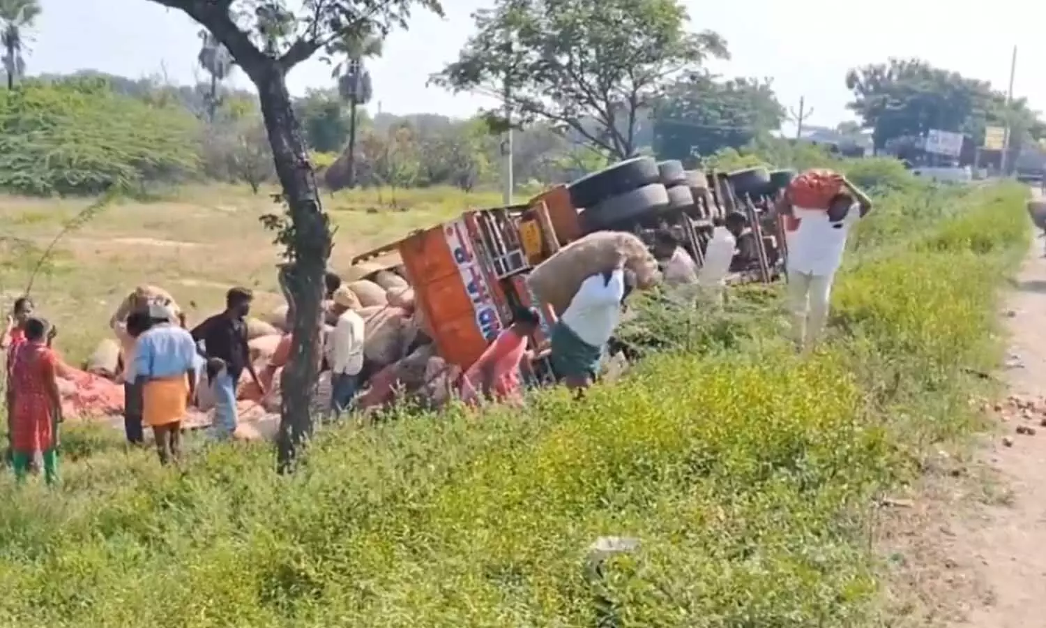 ఉల్లి లారీ బోల్తా – ఉల్లిపాయల దోపిడీ